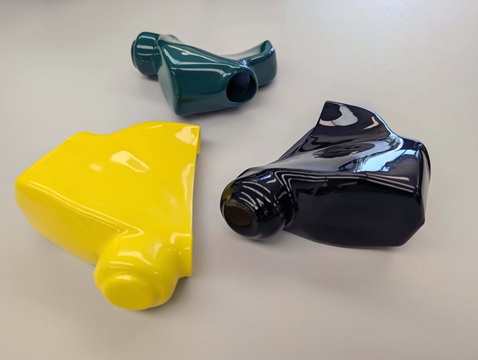 Info: Four styles of covers in three different colors. Material is custom formulated to be resistant to oil and gas for added durability. The customer provided the molds. After molding, secondary processing included punching the hole for the gas spout to pass through.